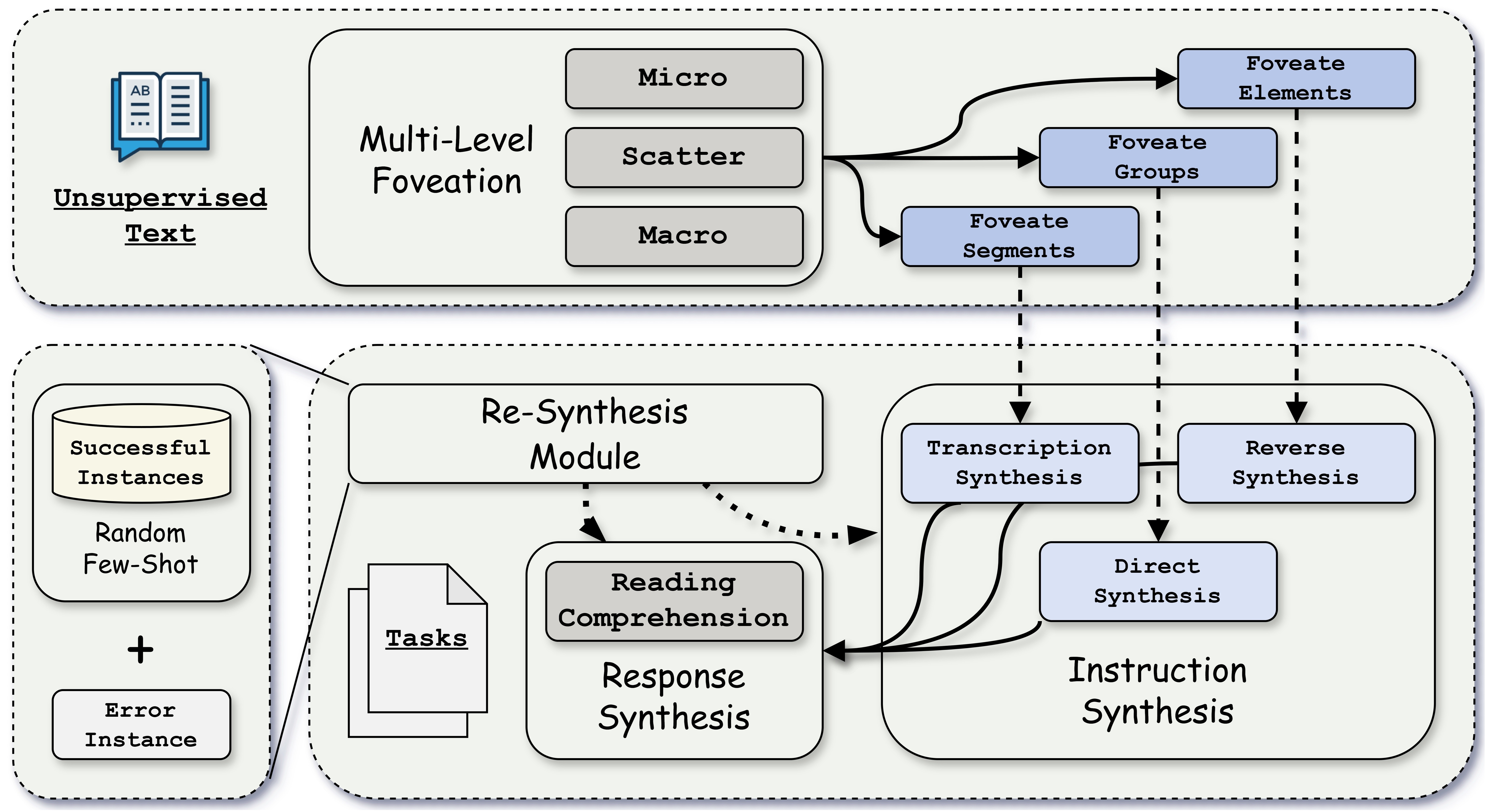 Inspired by hierarchical human visual perception, Self-Foveate introduces a "Micro-Scatter-Macro" methodology that extracts textual information at three complementary granularities: